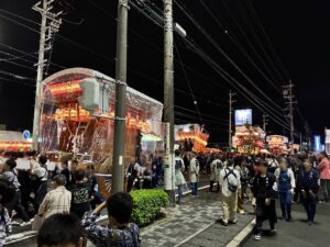 秋の夜空に響くお囃子は、どこか荒々しくも心を奮わせ、まさに“祭典”の名にふさわしい光景。灯りに照らされた屋台が進む姿は幻想的で、見る人を魅了しました。